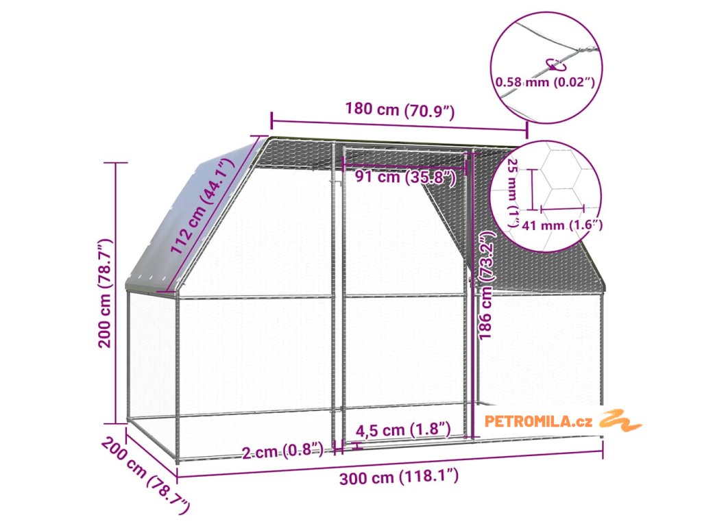 Klec pro kuřata stříbrná a šedá 3 x 2 x 2 m pozinkovaná ocel