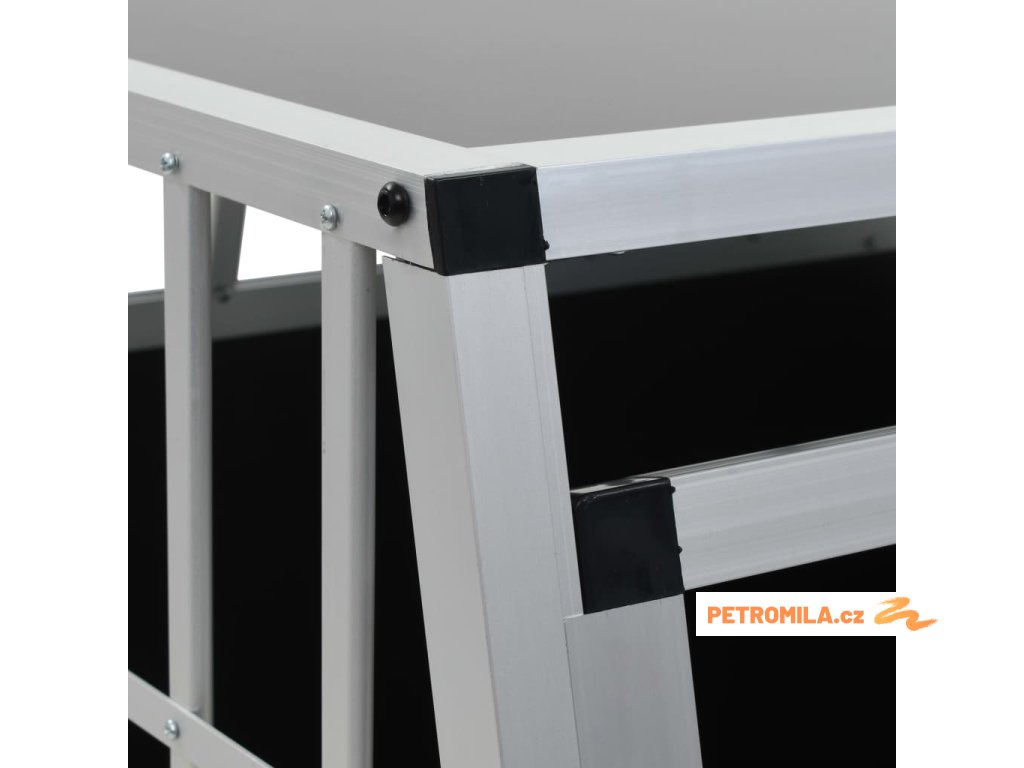 Klec pro psy je vyrobena z hliníku a MDF, je tudíž odolná a nenáročná na údržbu. V rozích je vybavena plastovými přípojkami, aby váš psí miláček nepřišel k úrazu. Inovativní konstrukce boxu umožňuje vašemu pejskovi, aby dohlížel na své okolí a získával dostatek čerstvého vzduchu. Design klece s dvěma dvířky lze snadno vcházet i vycházet. Naše klec je lehká a můžete ji bez problémů přepravovat ve svém autě. Sestavení výrobku je jednoduché.