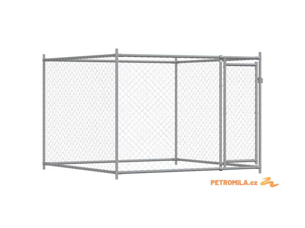 Klec pro psy s dvířky šedá 10 x 2 x 1,5 m pozinkovaná ocel