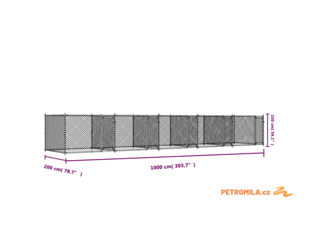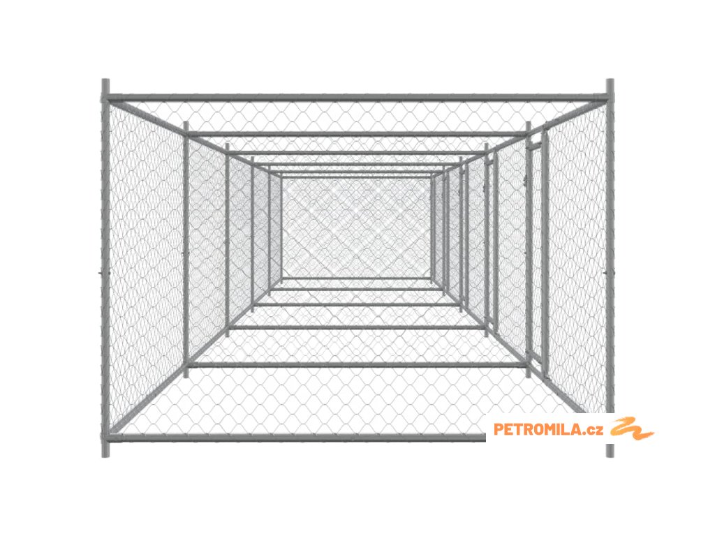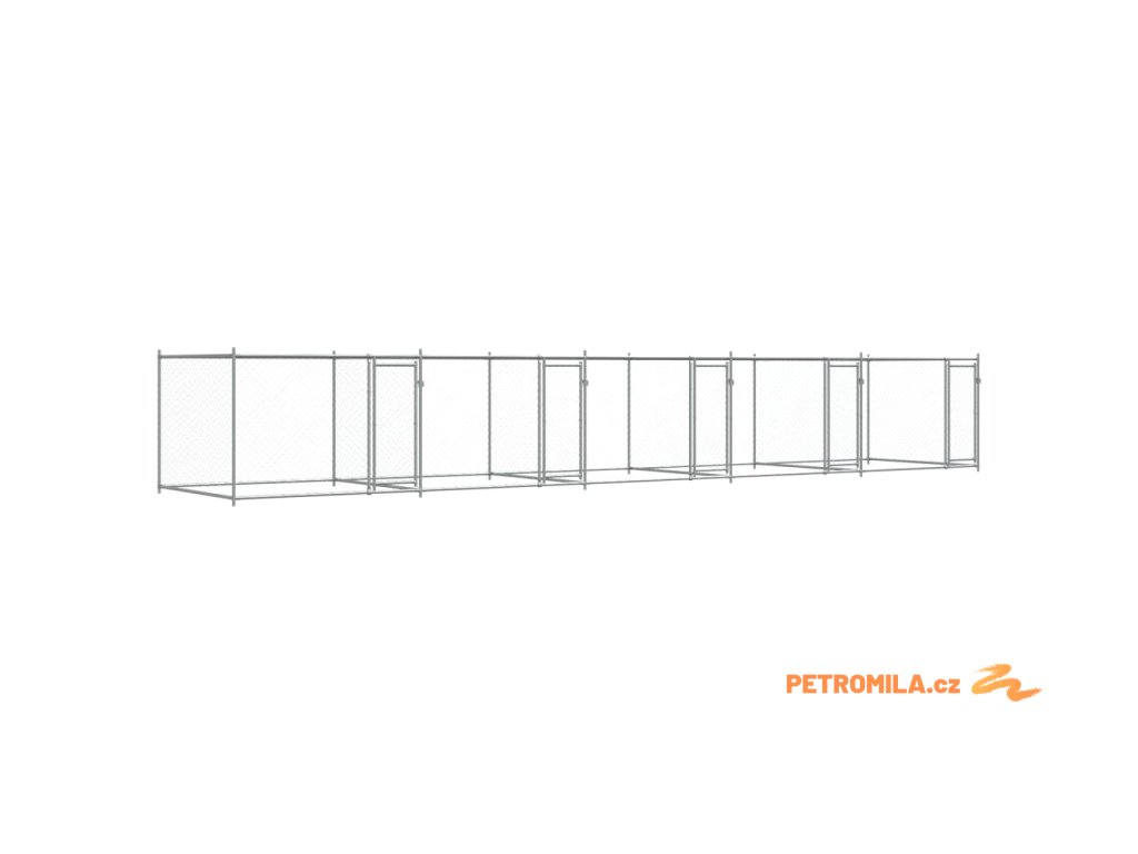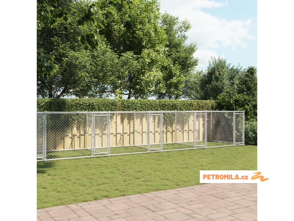 Klec pro psy s dvířky šedá 10 x 2 x 1,5 m pozinkovaná ocel