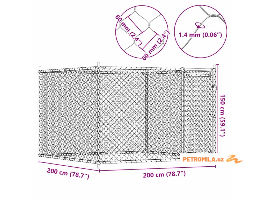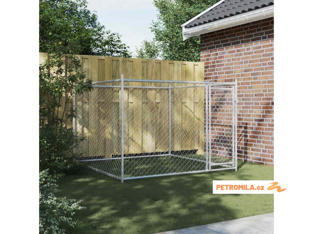 Klec pro psy s dvířky šedá 2 x 2 x 1,5 m pozinkovaná ocel
