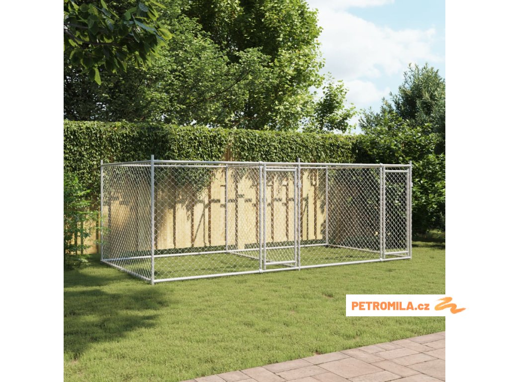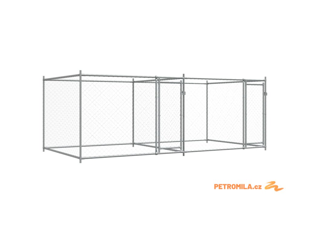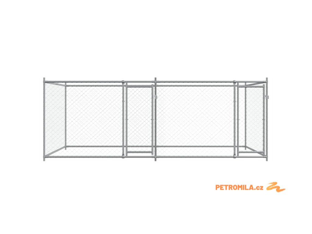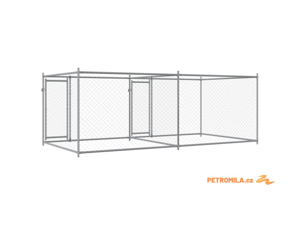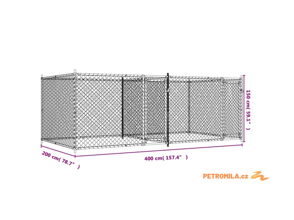 Klec pro psy s dvířky šedá 4 x 2 x 1,5 m pozinkovaná ocel