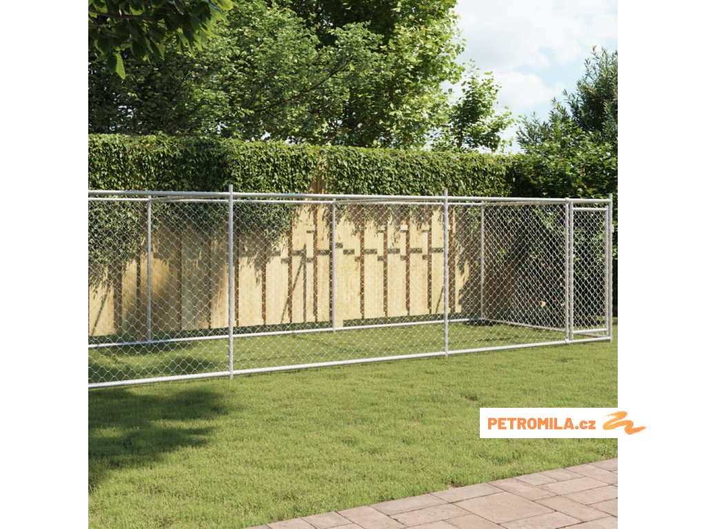 Klec pro psy s dvířky šedá 8 x 2 x 1,5 m pozinkovaná ocel
