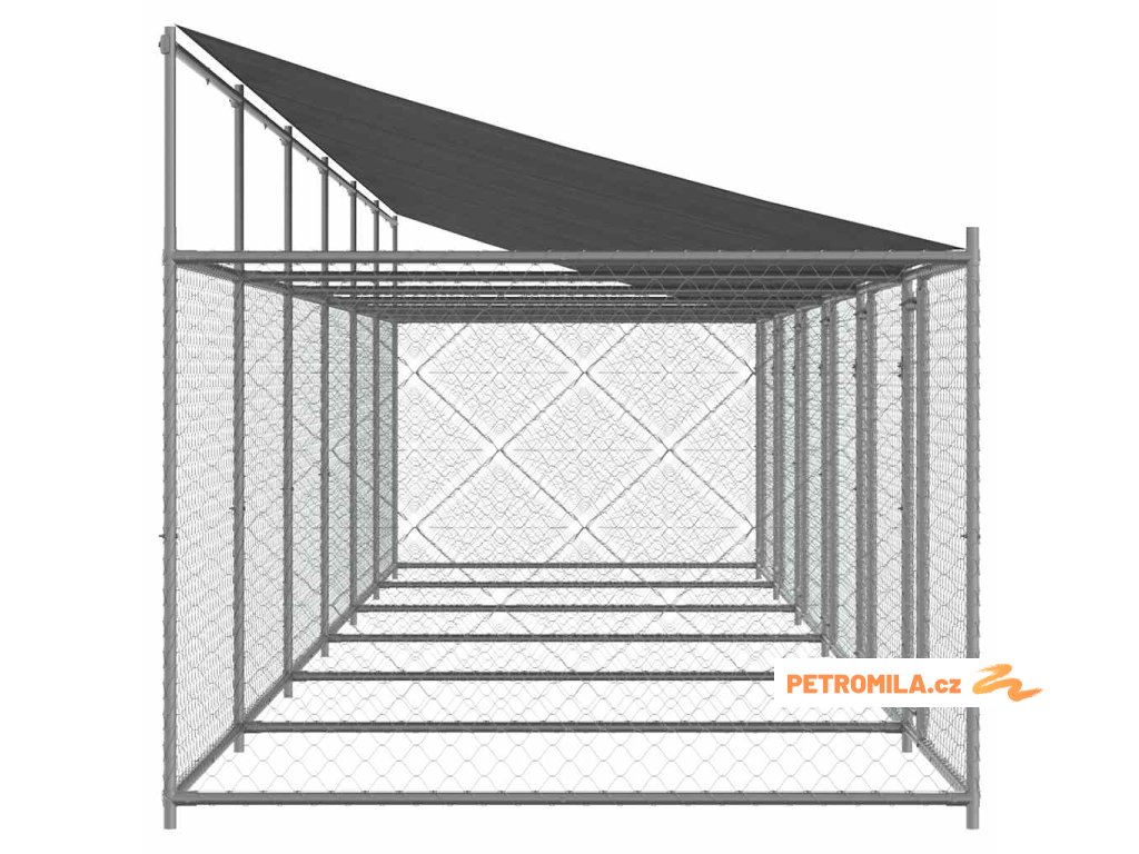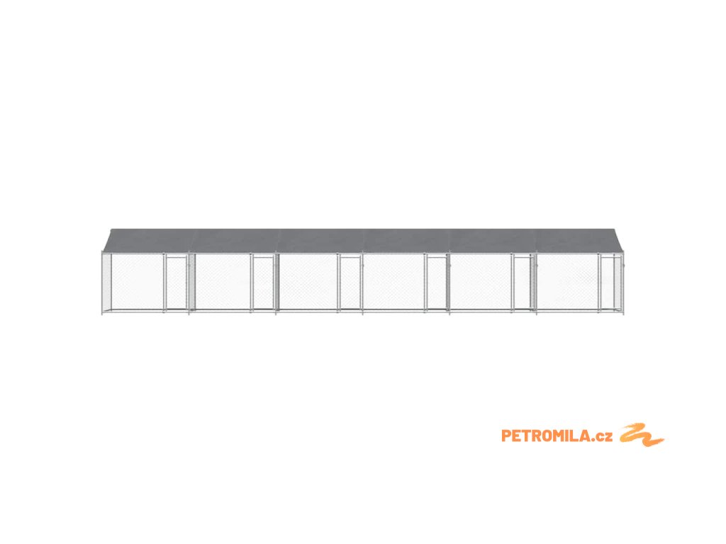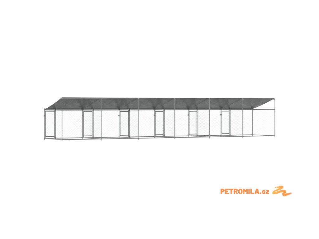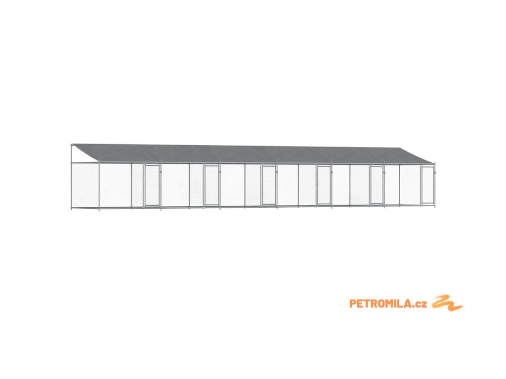 Klec pro psy se střechou a dvířky šedá 12x2x2m pozinkovaná ocel