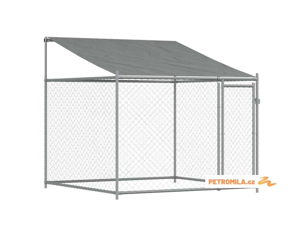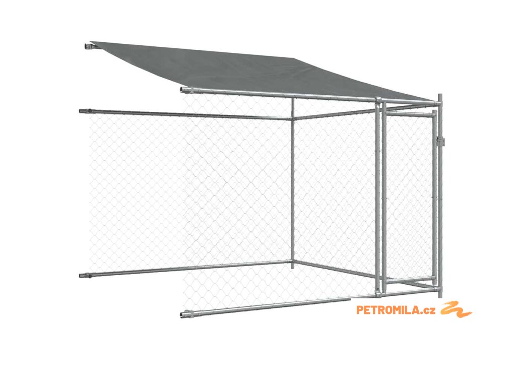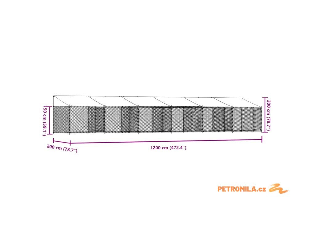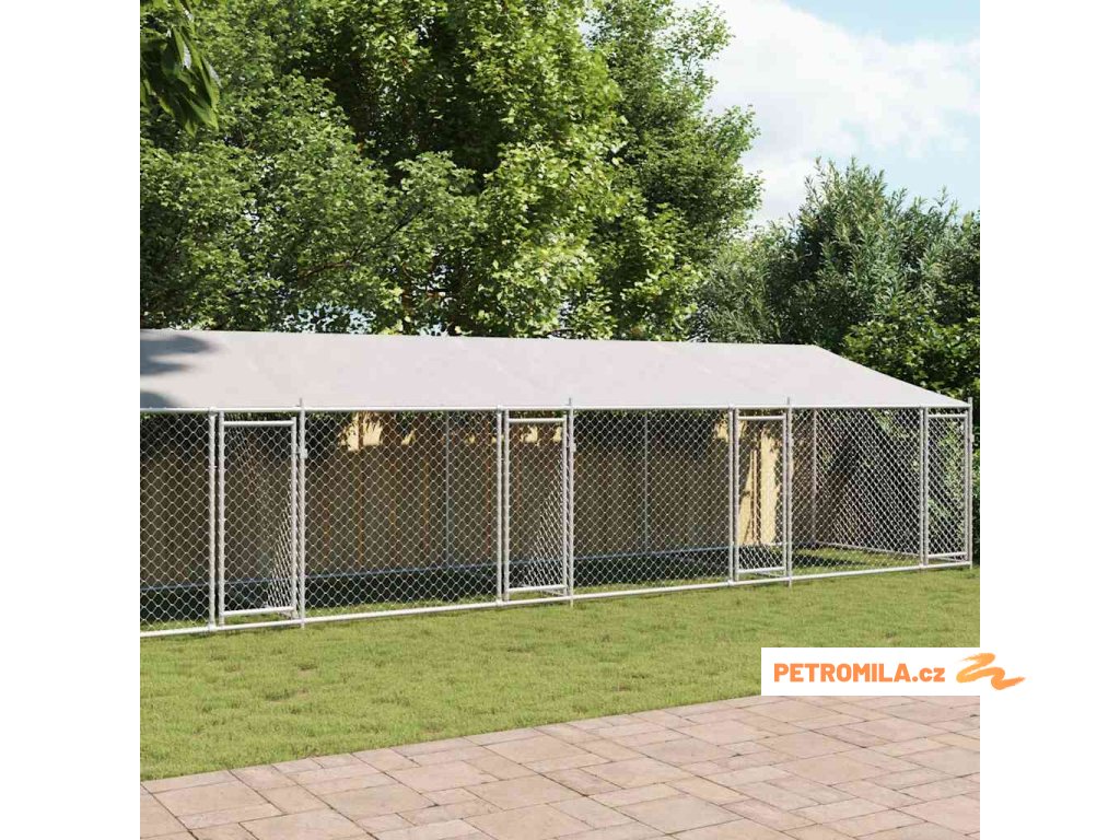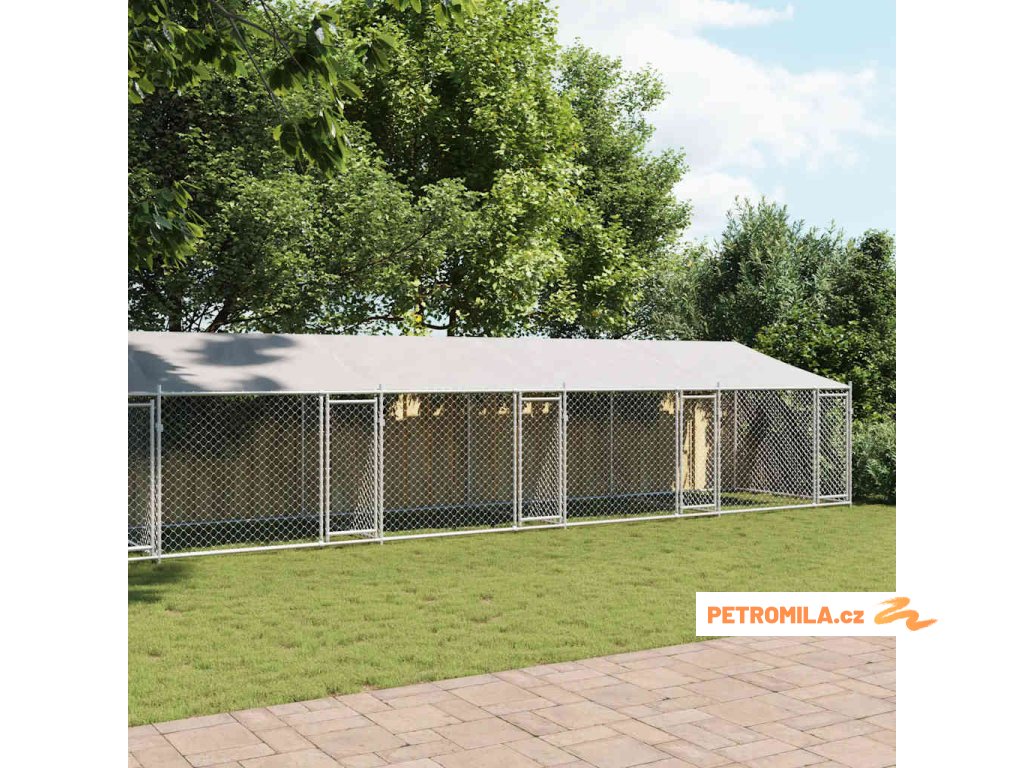 Klec pro psy se střechou a dvířky šedá 12x2x2m pozinkovaná ocel