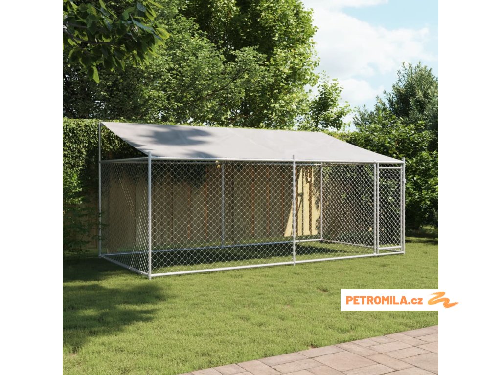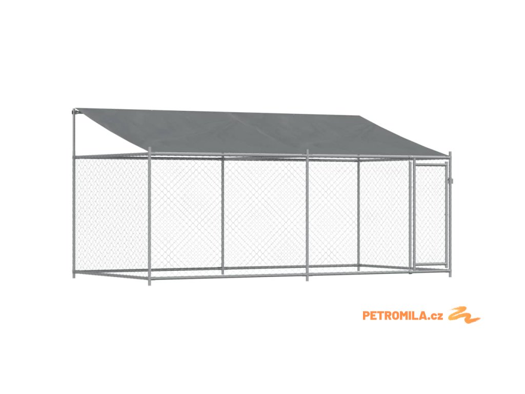 Klec pro psy se střechou a dvířky šedá 4x2x2 m pozinkovaná ocel