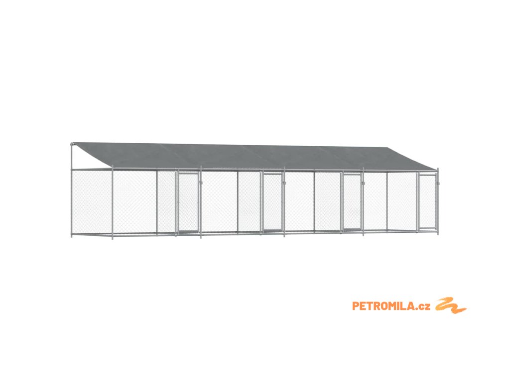 Klec pro psy se střechou a dvířky šedá 8x2x2 m pozinkovaná ocel