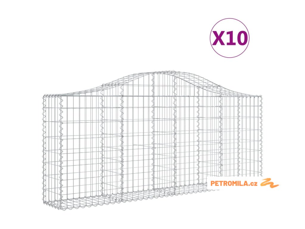 Klenuté gabionové koše 10ks 200x30x80/100 cm pozinkované železo