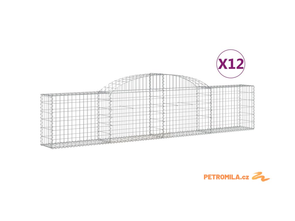 Klenuté gabionové koše 12ks 200x30x100/120cm pozinkované železo