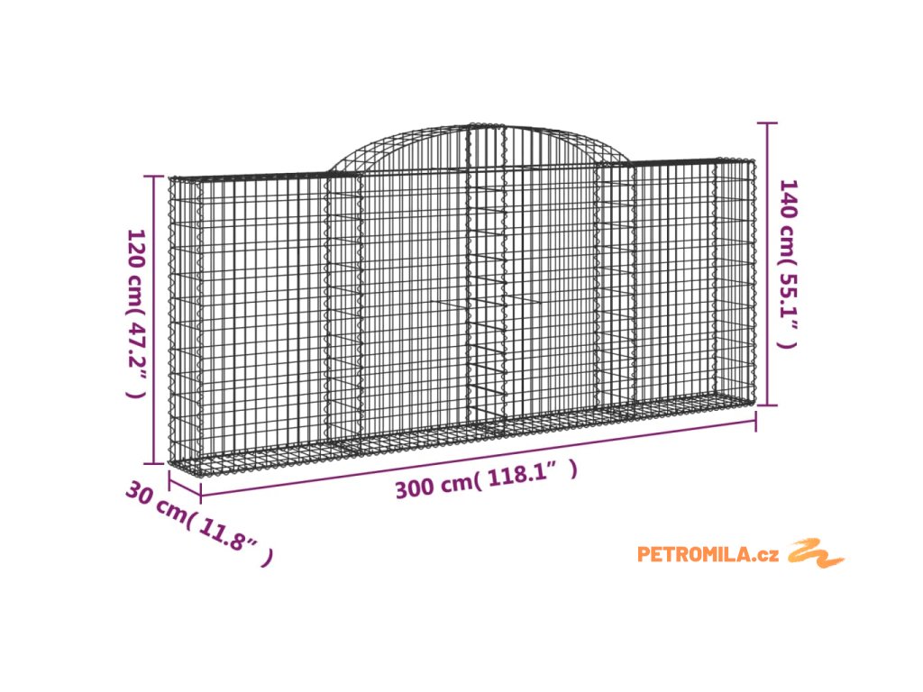 Klenuté gabionové koše 11 ks 300x30x60/80 cm pozinkované železo
