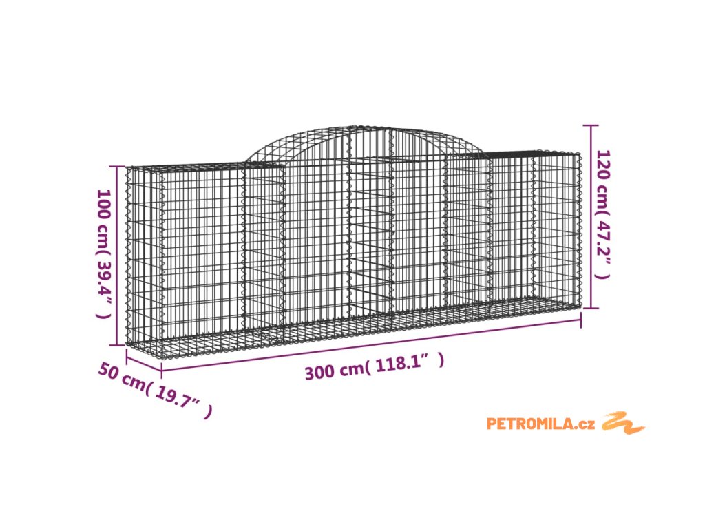 Klenuté gabionové koše 13ks 300x50x100/120cm pozinkované železo