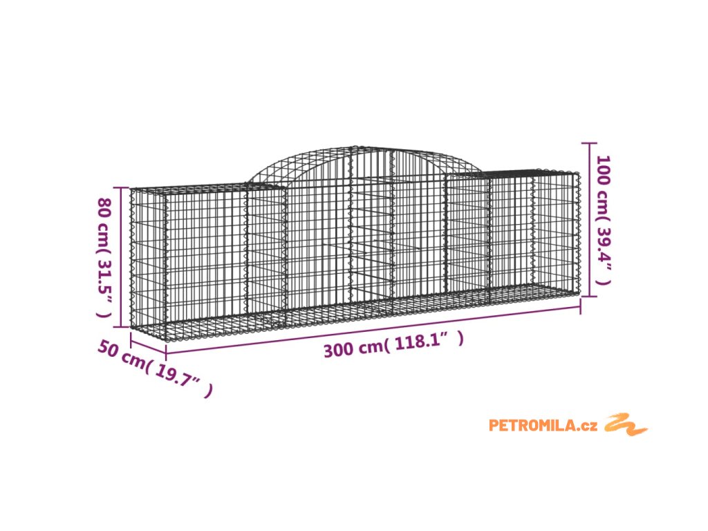 Klenuté gabionové koše 15ks 300x50x80/100 cm pozinkované železo