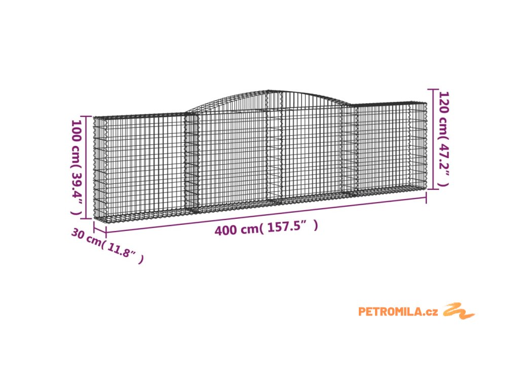 Klenuté gabionové koše 15ks 400x30x100/120cm pozinkované železo