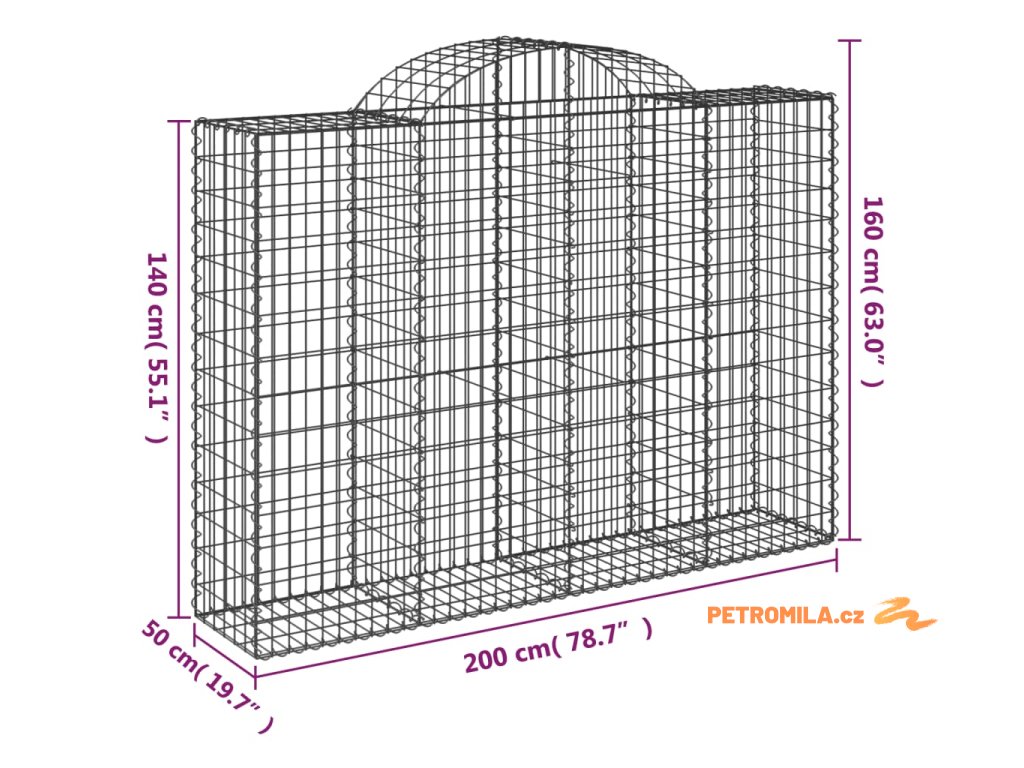 Klenuté gabionové koše 25 ks 200x50x60/80 cm pozinkované železo