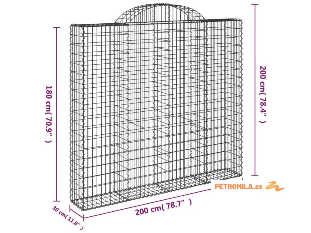 Klenuté gabionové koše 2 ks 200x30x180/200cm pozinkované železo