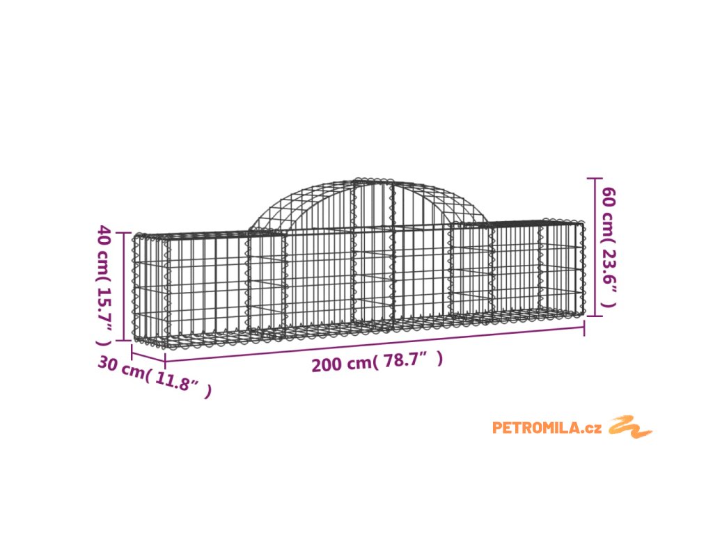 Klenuté gabionové koše 2 ks 200x30x40/60 cm pozinkované železo