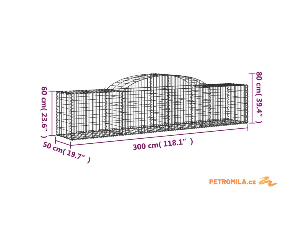 Klenuté gabionové koše 20 ks 300x50x60/80 cm pozinkované železo