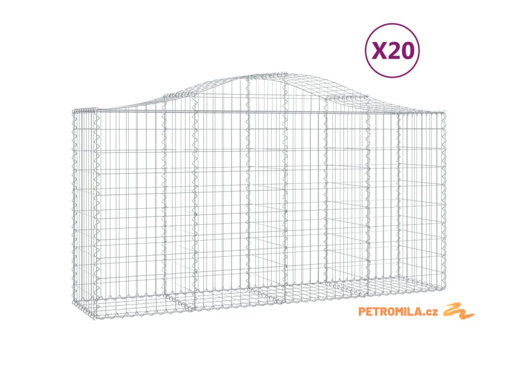 Klenuté gabionové koše 20ks 200x50x100/120cm pozinkované železo