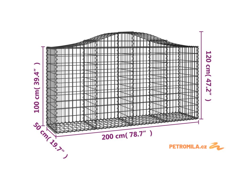 Klenuté gabionové koše 25ks 200x50x100/120cm pozinkované železo