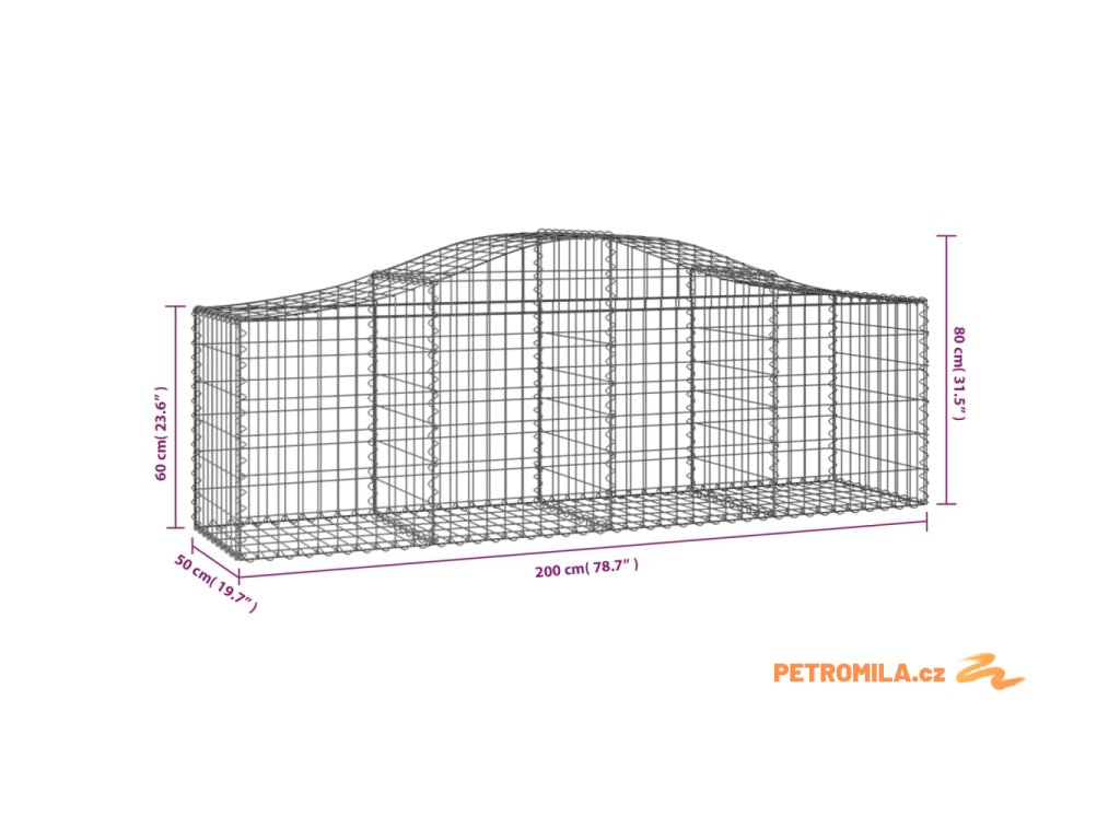 Klenuté gabionové koše 25 ks 200x50x60/80 cm pozinkované železo