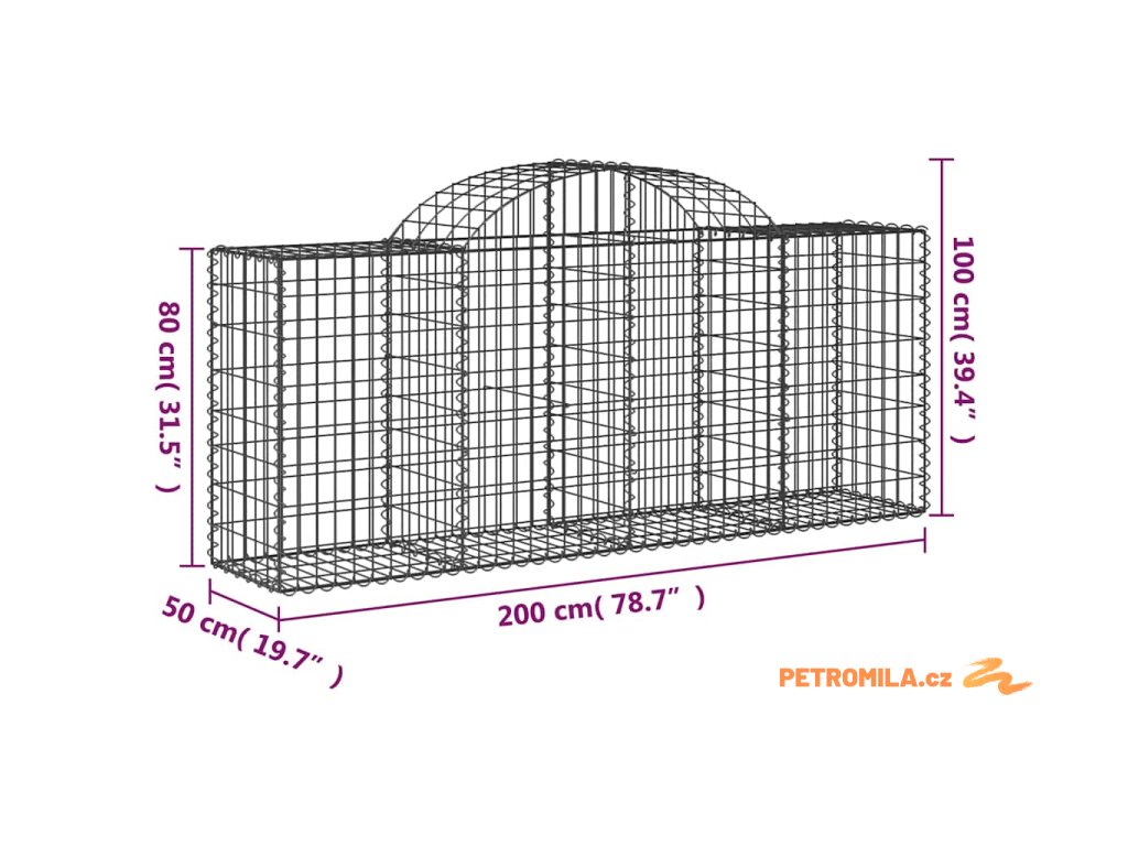 Klenuté gabionové koše 25 ks 200x50x60/80 cm pozinkované železo