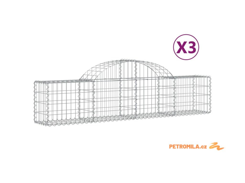 Klenuté gabionové koše 3 ks 200x30x40/60 cm pozinkované železo