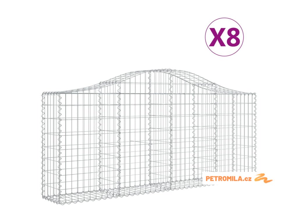 Klenuté gabionové koše 8 ks 200x30x80/100 cm pozinkované železo