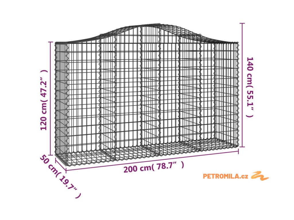 Klenuté gabionové koše 7 ks 200x50x80/100 cm pozinkované železo