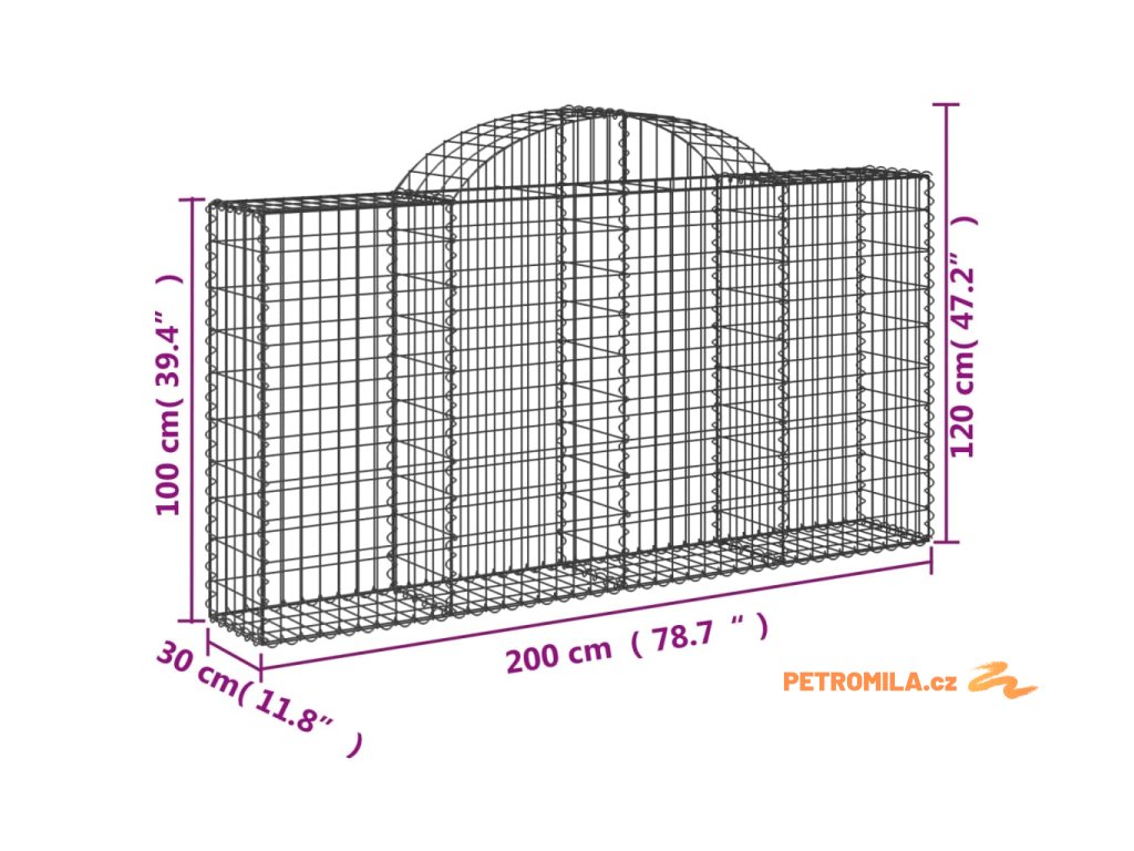 Klenuté gabionové koše 12ks 200x30x100/120cm pozinkované železo