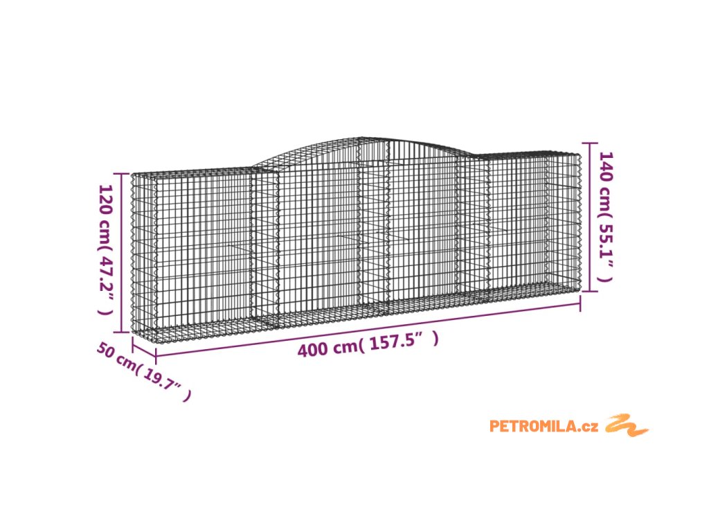 Klenuté gabionové koše 7 ks 400x30x100/120cm pozinkované železo