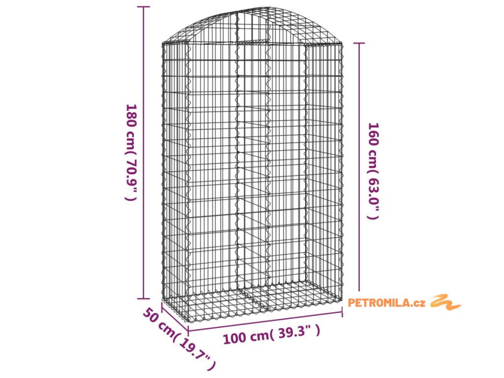 Klenutý gabionový koš 100 x 50 x 160/180 cm pozinkované železo
