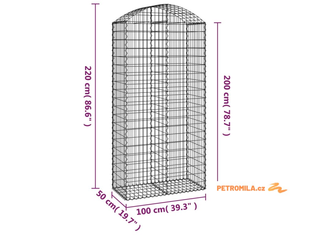 Klenutý gabionový koš 100 x 50 x 200/220 cm pozinkované železo