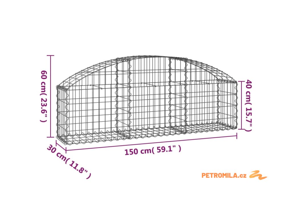 Klenutý gabionový koš 150 x 30 x 40/60 cm pozinkované železo
