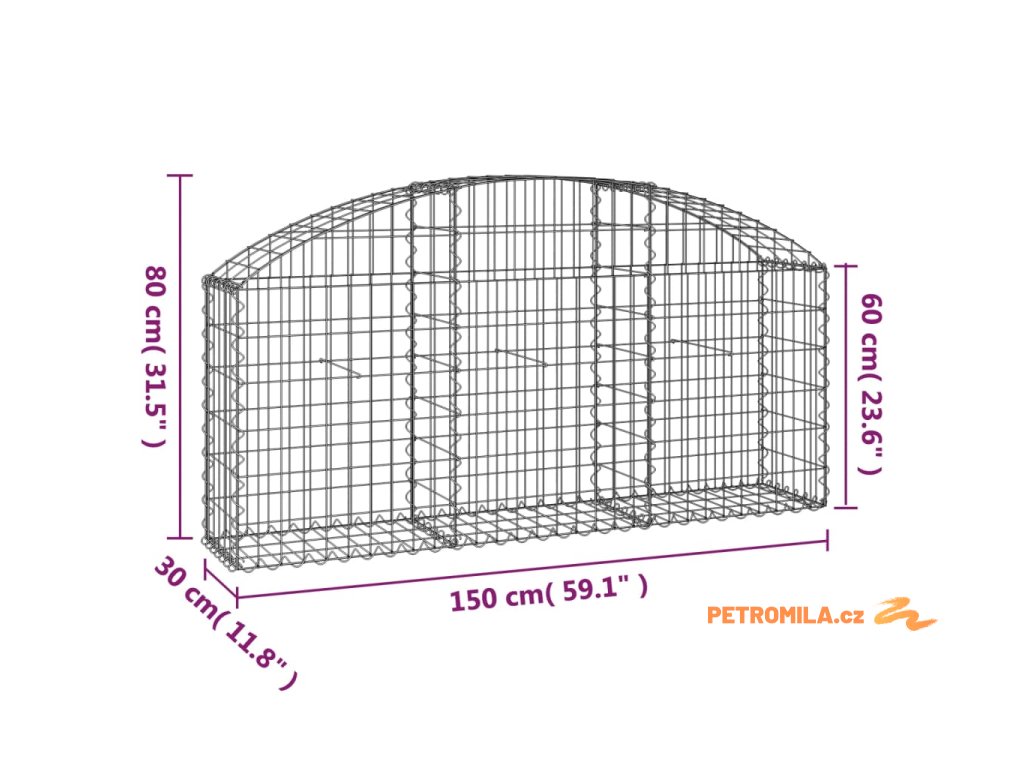 Klenutý gabionový koš 150 x 30 x 60/80 cm pozinkované železo