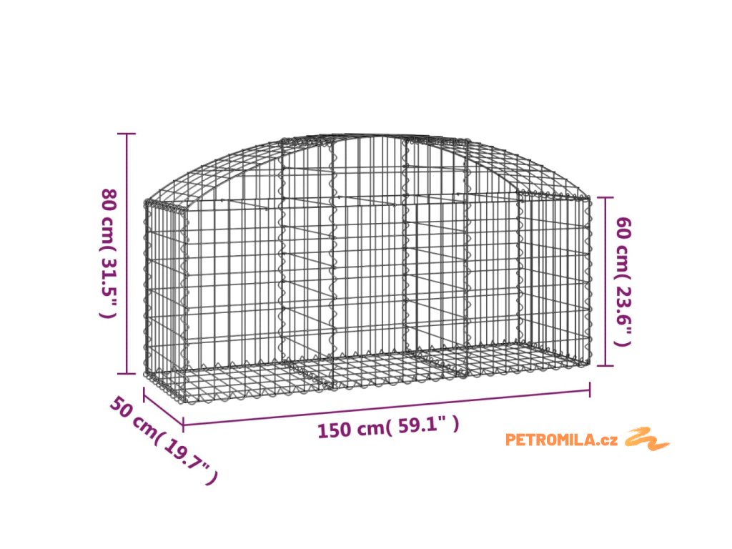 Klenutý gabionový koš 150 x 50 x 60/80 cm pozinkované železo