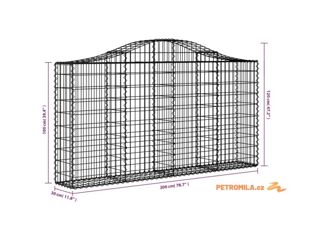 Klenuté gabionové koše 2 ks 200x30x100/120cm pozinkované železo