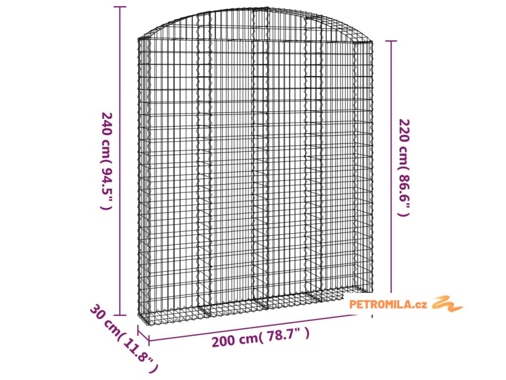 Klenutý gabionový koš 200 x 30 x 220/240 cm pozinkované železo