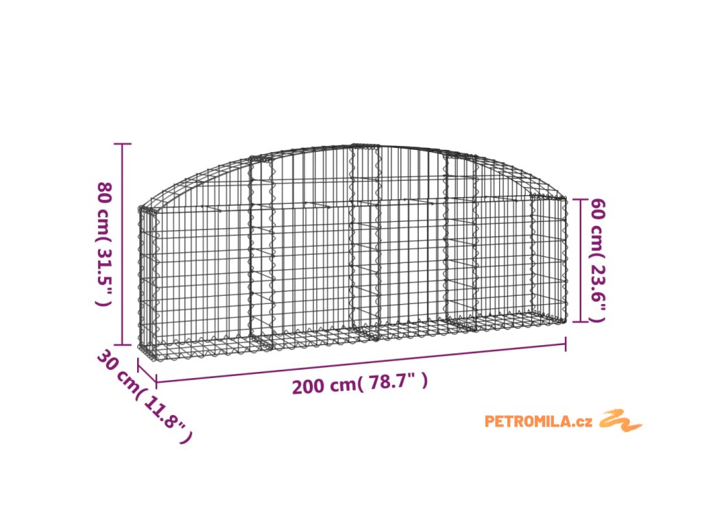 Klenutý gabionový koš 200 x 30 x 60/80 cm pozinkované železo