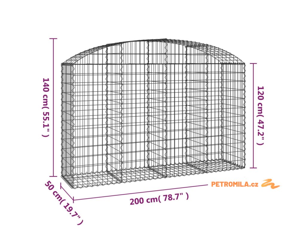 Klenutý gabionový koš 200 x 50 x 120/140 cm pozinkované železo