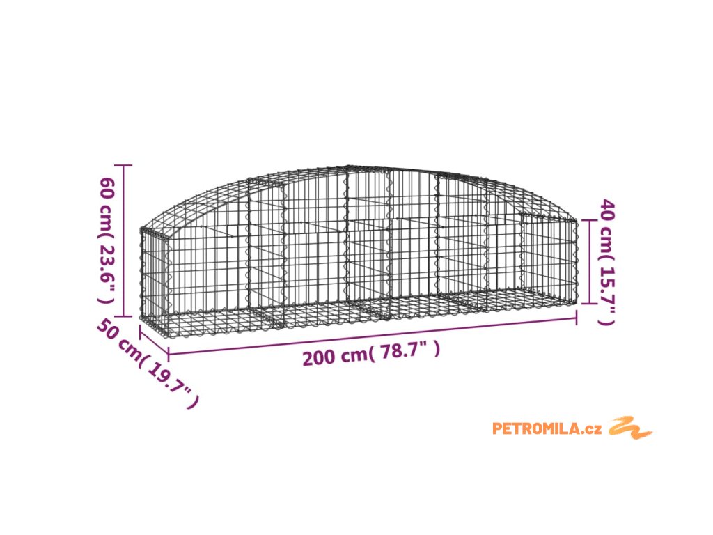 Klenutý gabionový koš 200 x 50 x 40/60 cm pozinkované železo
