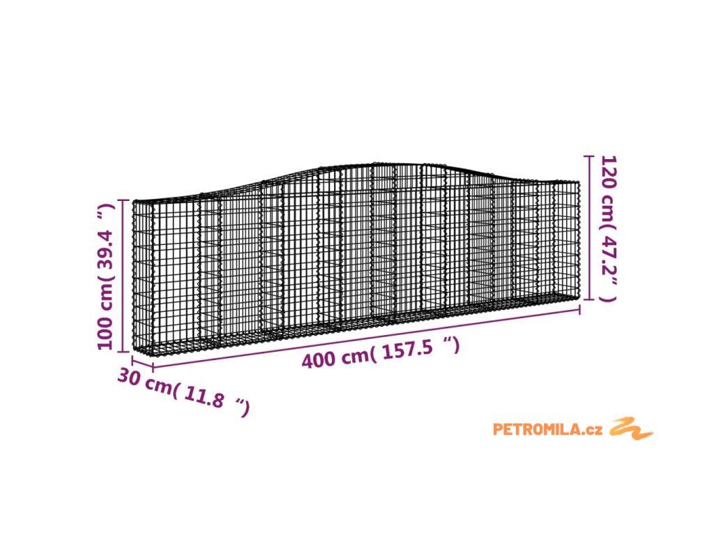 Klenutý gabionový koš 400 x 30 x 100/120 cm pozinkované železo