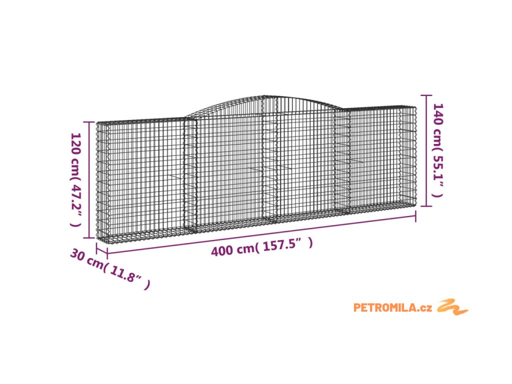Klenutý gabionový koš 400 x 30 x 120/140 cm pozinkované železo