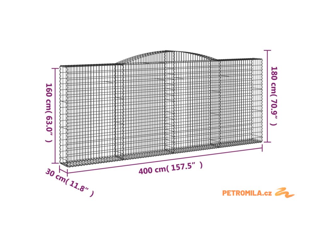 Klenutý gabionový koš 400 x 30 x 160/180 cm pozinkované železo