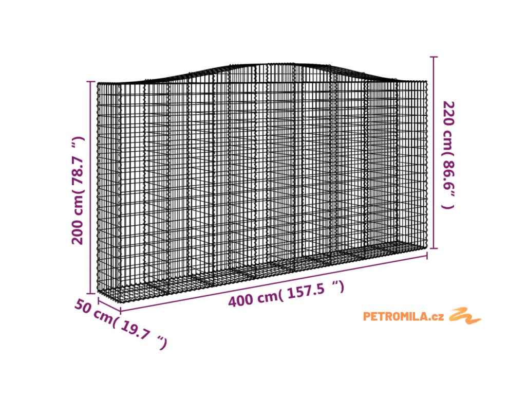 Klenutý gabionový koš 400 x 50 x 200/220 cm pozinkované železo