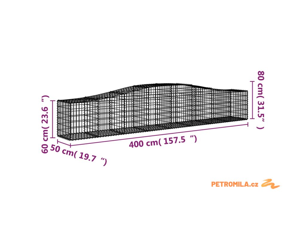 Klenutý gabionový koš 400 x 50 x 60/80 cm pozinkované železo