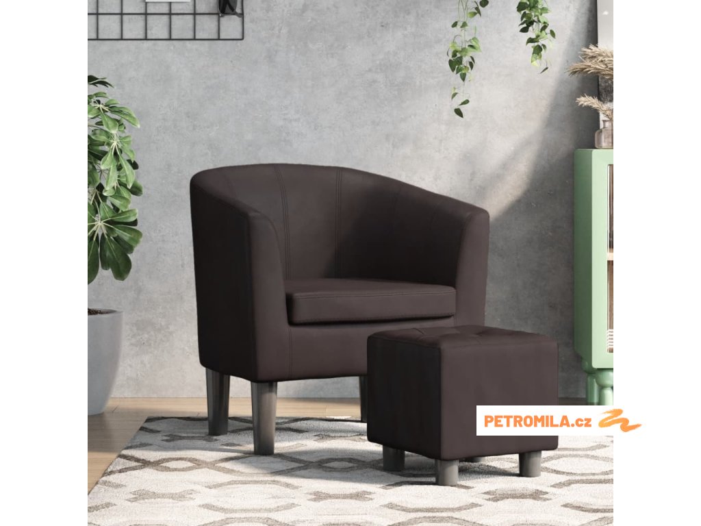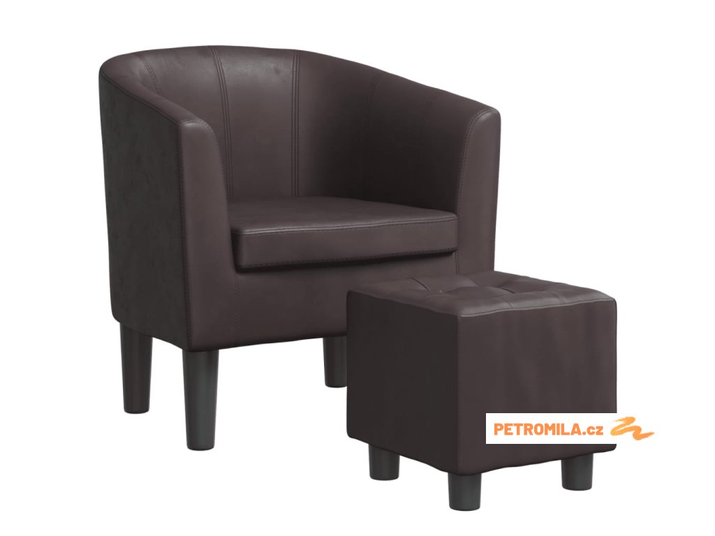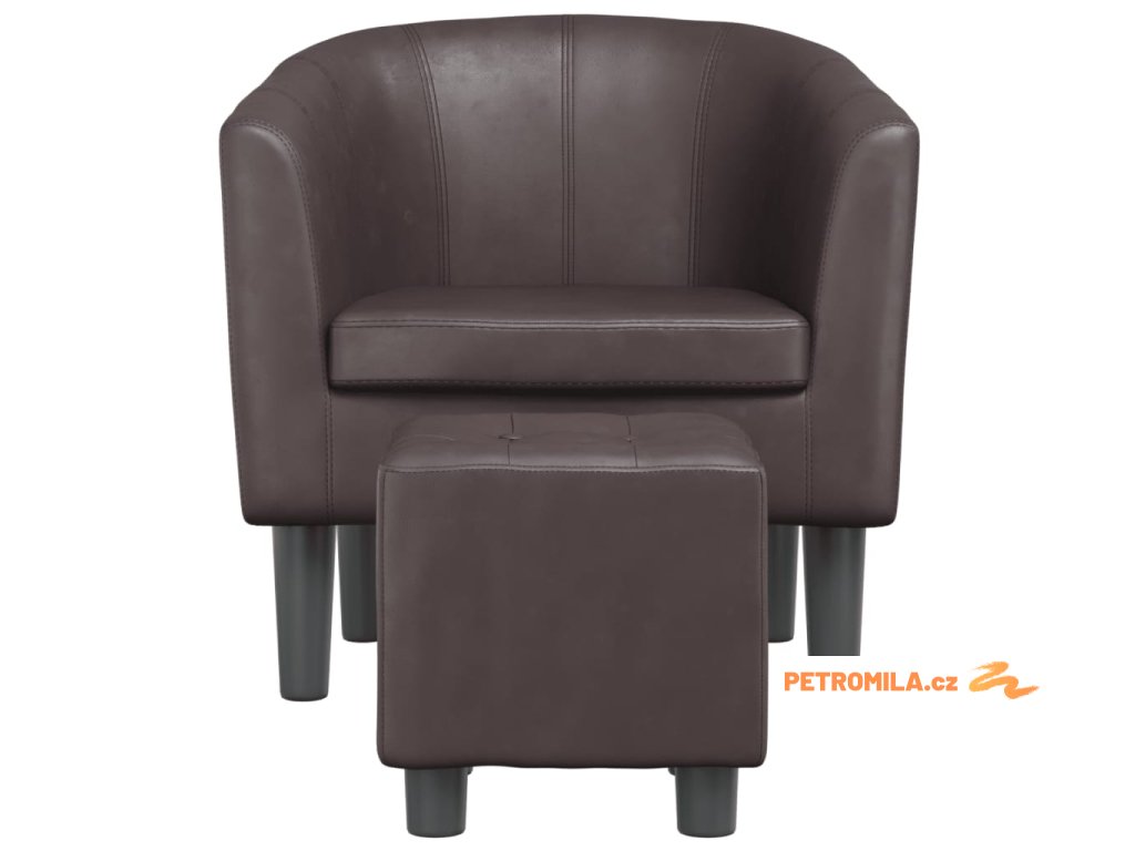 Klubové křeslo s podnožkou hnědé umělá kůže
