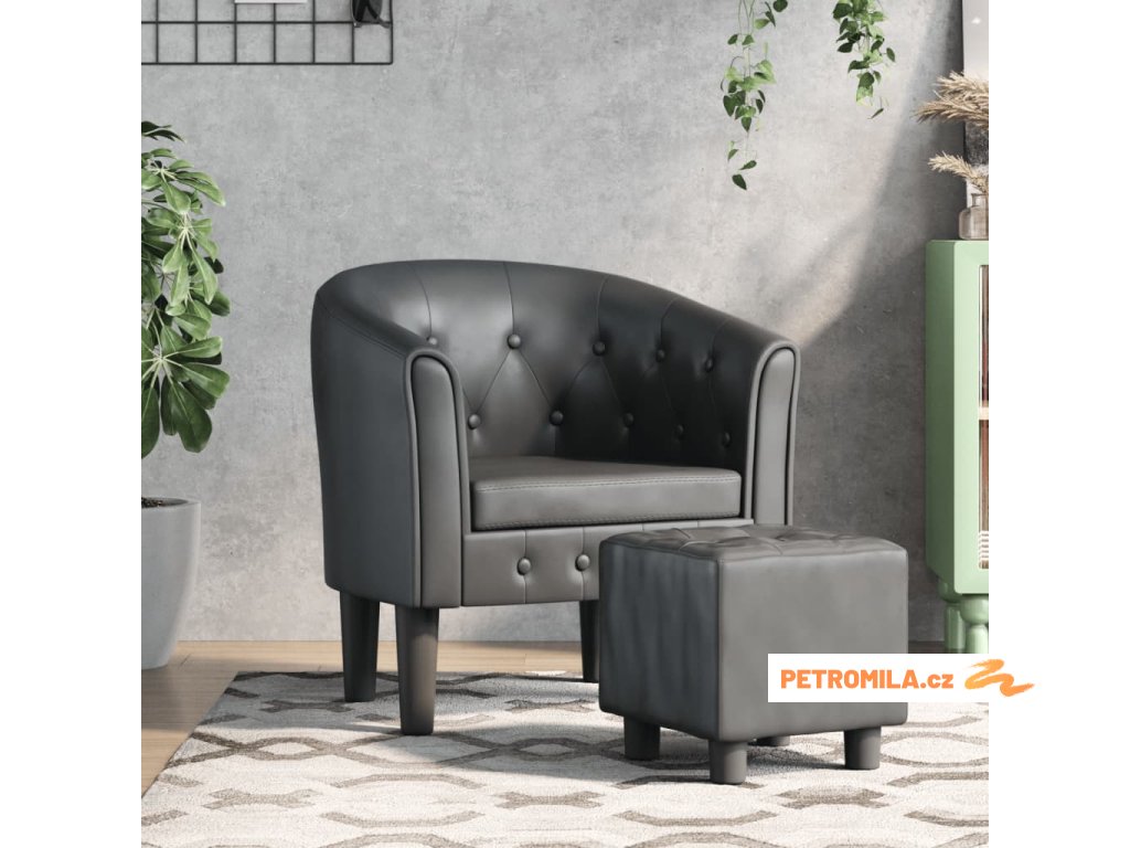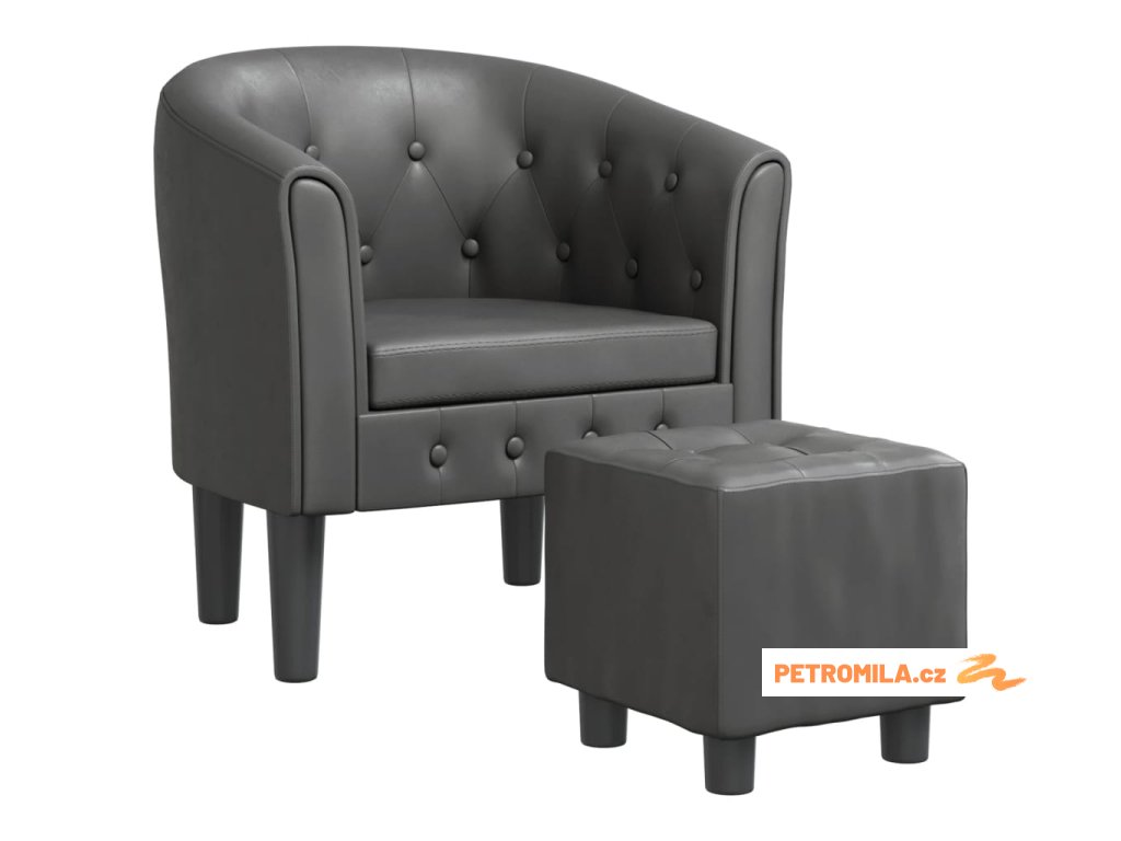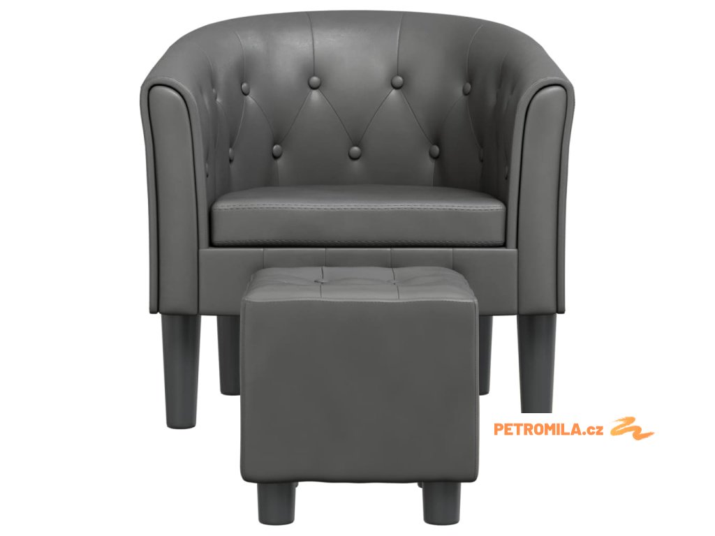 Klubové křeslo s podnožkou šedé umělá kůže
