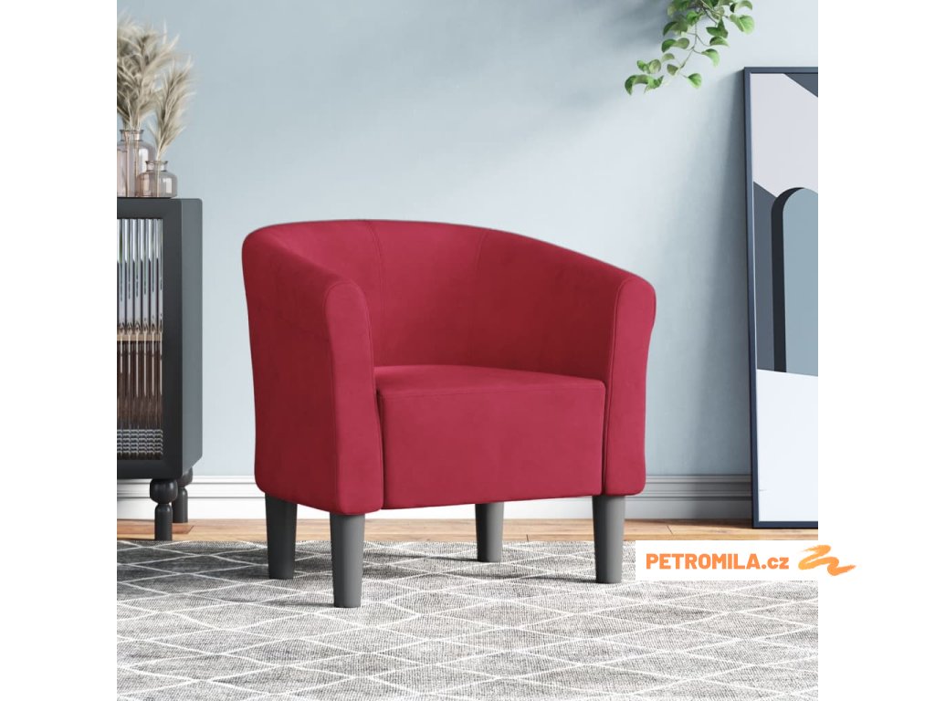 Klubové křeslo vínové samet