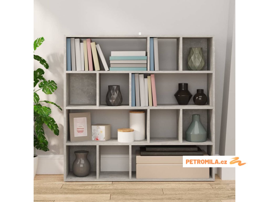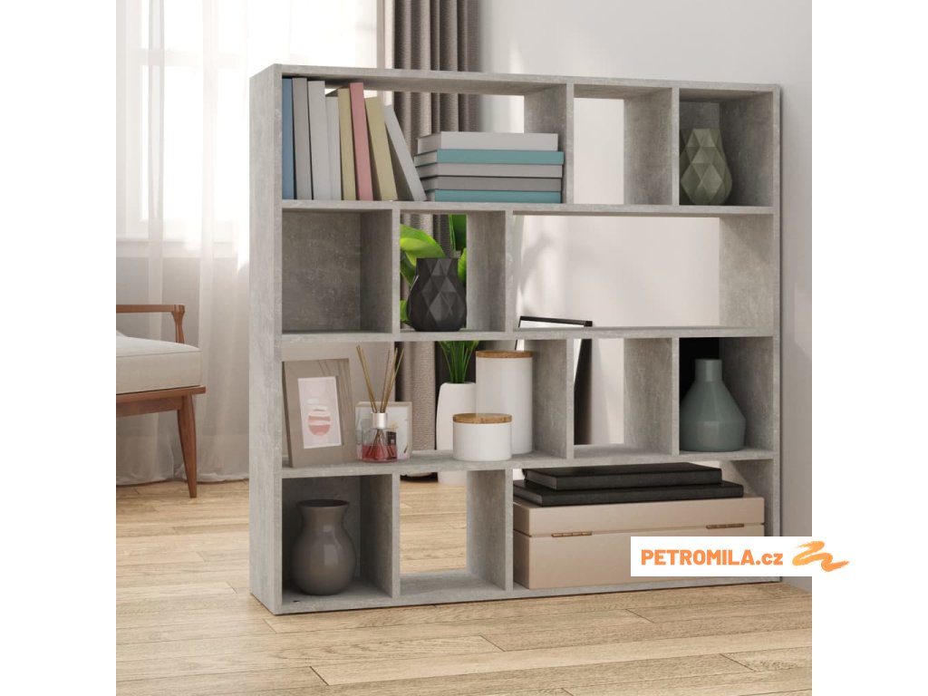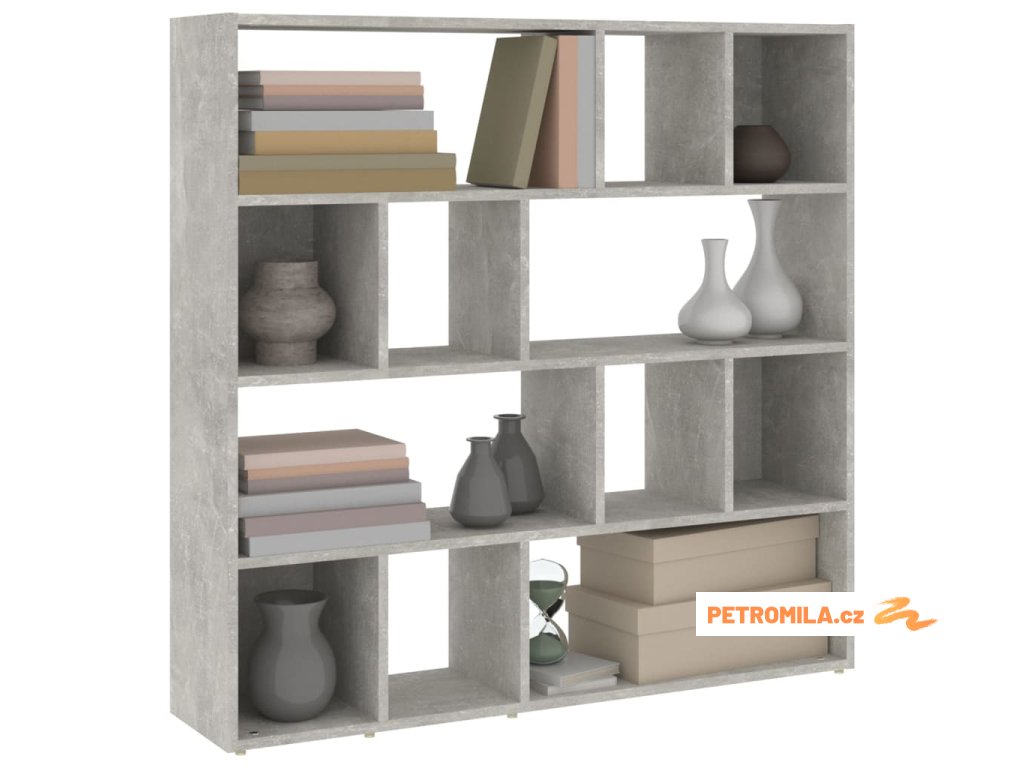 Knihovna / dělicí stěna betonově šedá 105 x 24 x 102 cm