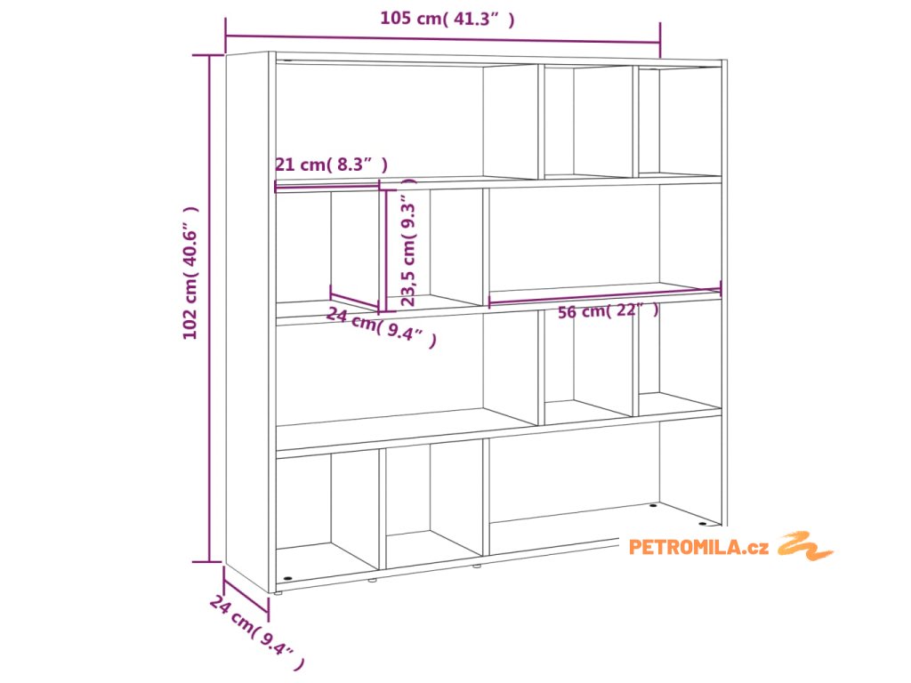 - Rozměry: 105 x 24 x 102 cm (Š x H x V)